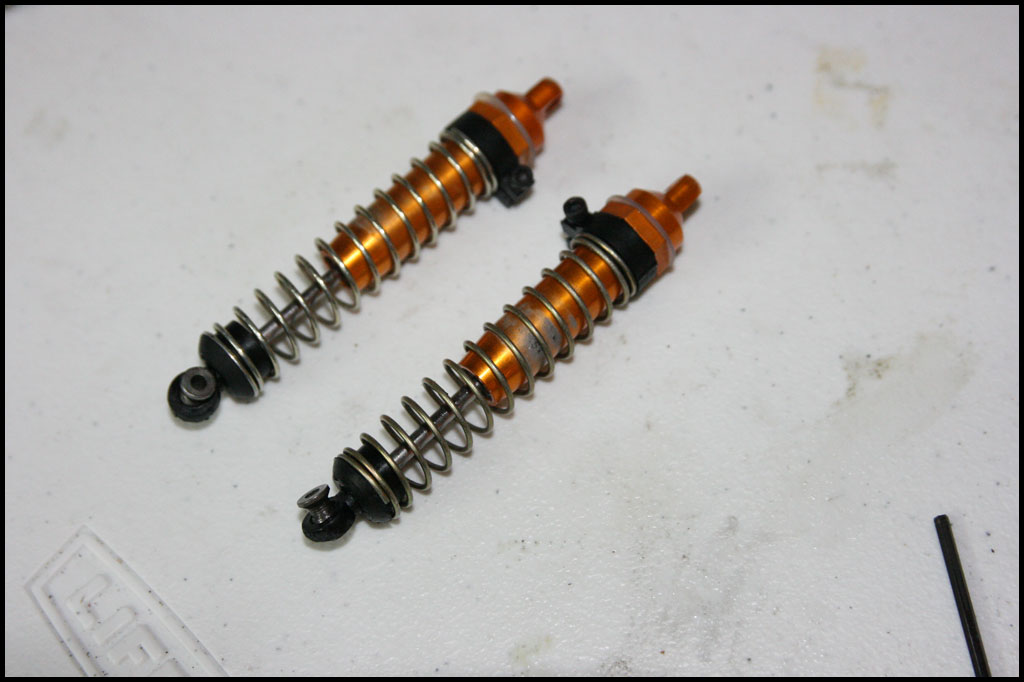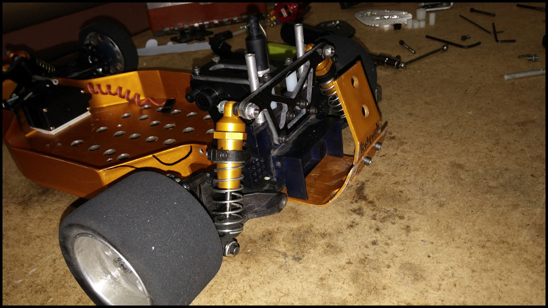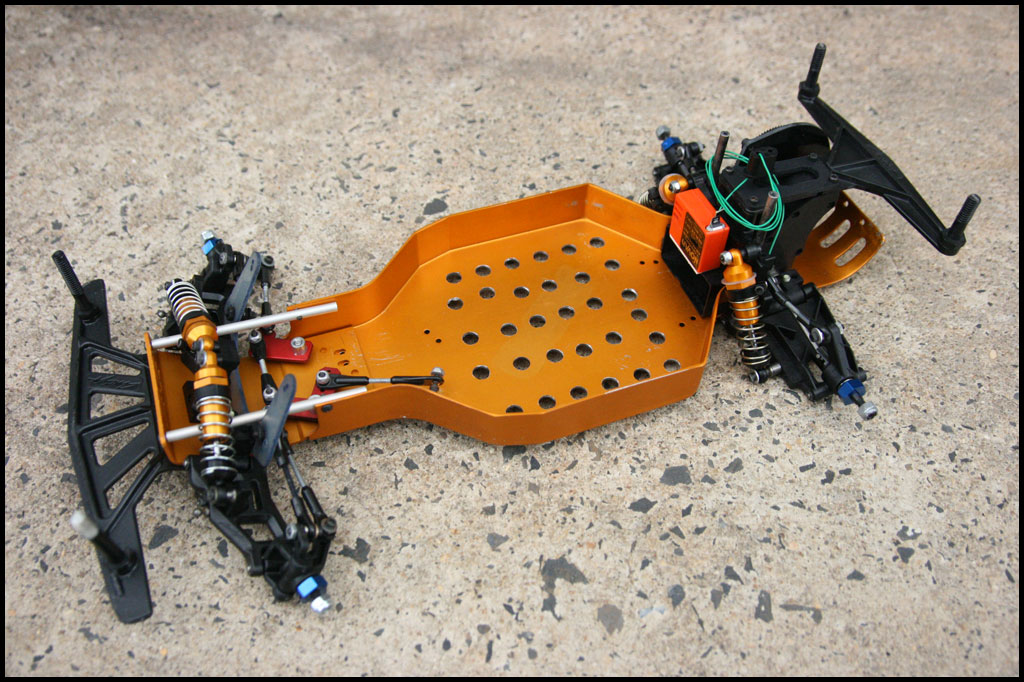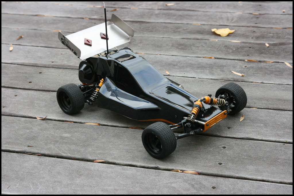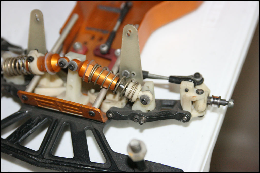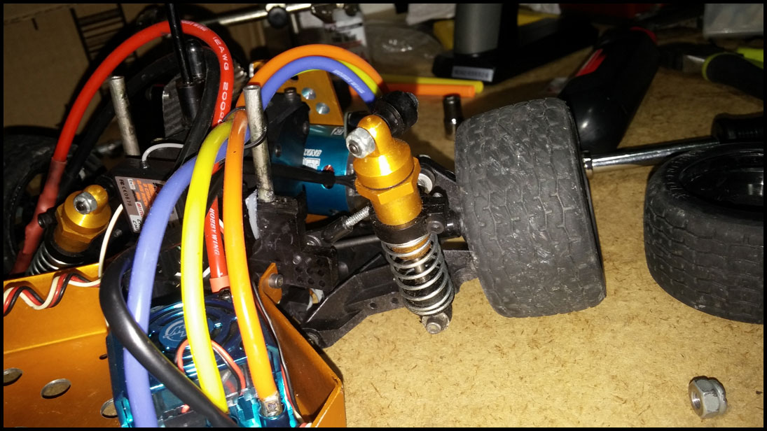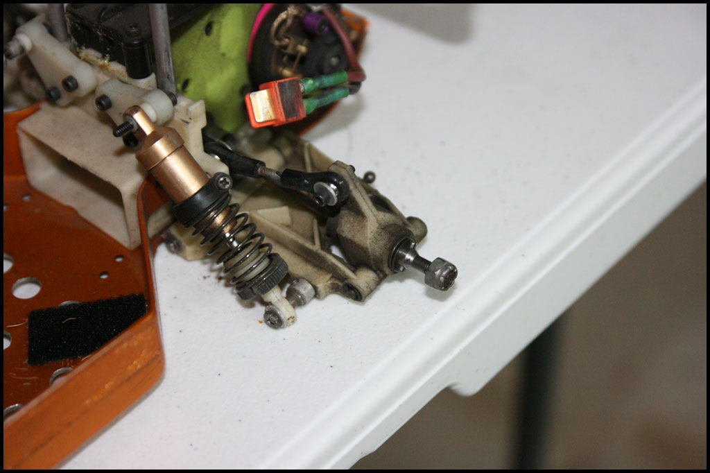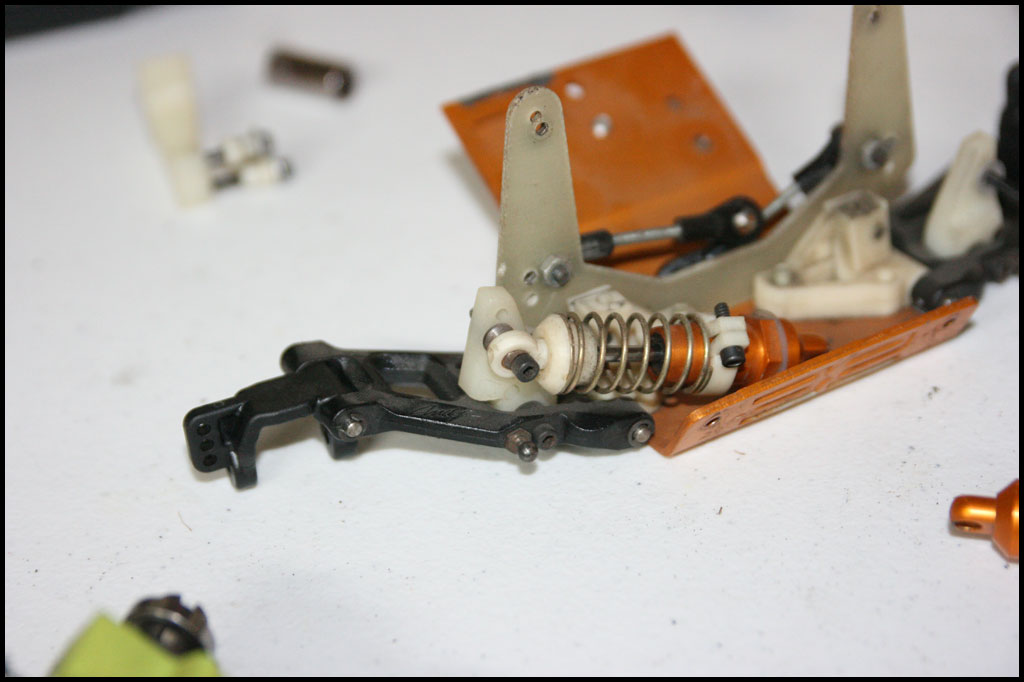 Started with this one first since I was able to find wheels and tires for it. She was really dirty but we used to race these things every week. Turning out awesome. Originally it had Kyosho front shocks on the rear - but I was able to find a cheap set of RC10 fronts on Ebay so when they come in I'll have a matching set and the Kyosho shocks can go back where they belong. All the shocks were rebuilt and I dyed everything black. It looked weird with some white and some black parts so I evened it out. This one even had a super trick A&L belt driven transmission - I definitely don't remember doing that. Should be done soon.