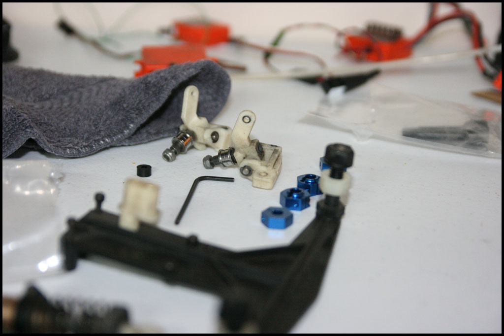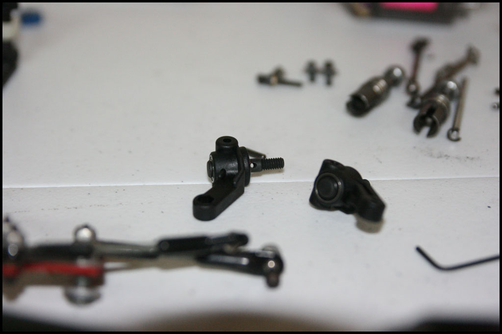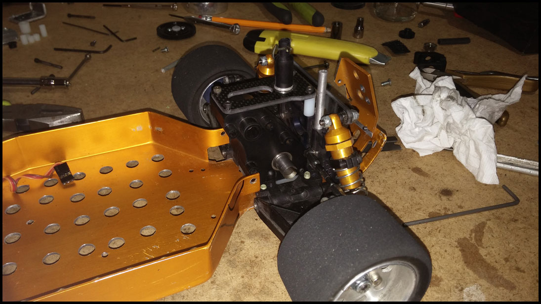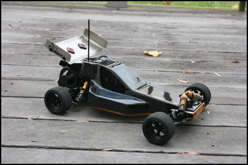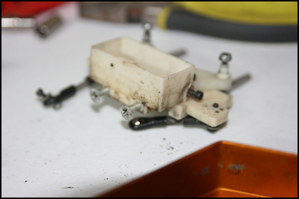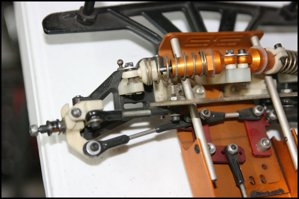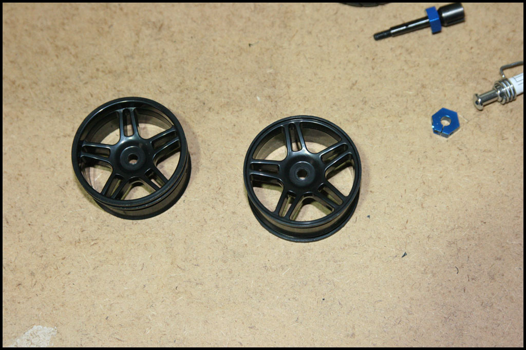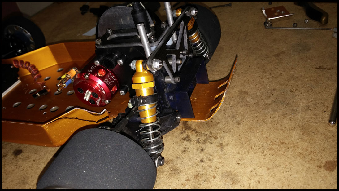 Started with this one first since I was able to find wheels and tires for it. She was really dirty but we used to race these things every week. Turning out awesome. Originally it had Kyosho front shocks on the rear - but I was able to find a cheap set of RC10 fronts on Ebay so when they come in I'll have a matching set and the Kyosho shocks can go back where they belong. All the shocks were rebuilt and I dyed everything black. It looked weird with some white and some black parts so I evened it out. This one even had a super trick A&L belt driven transmission - I definitely don't remember doing that. Should be done soon.
