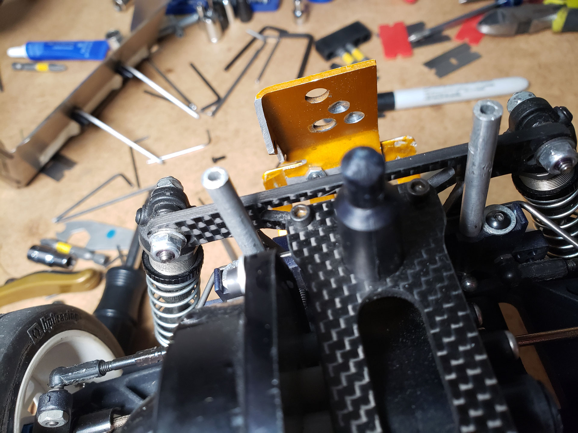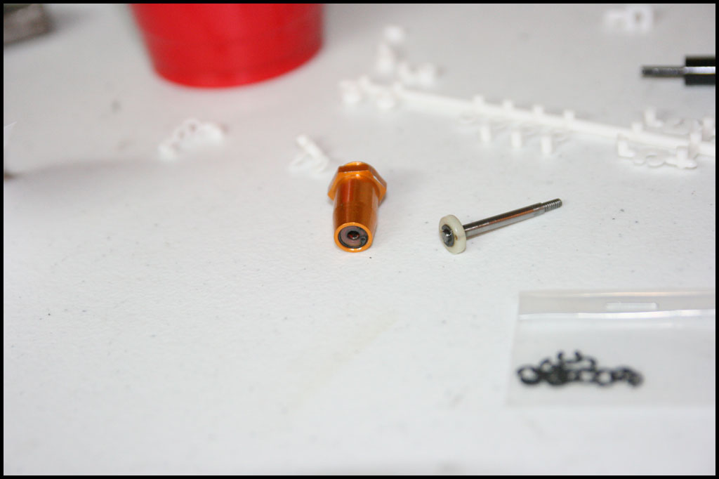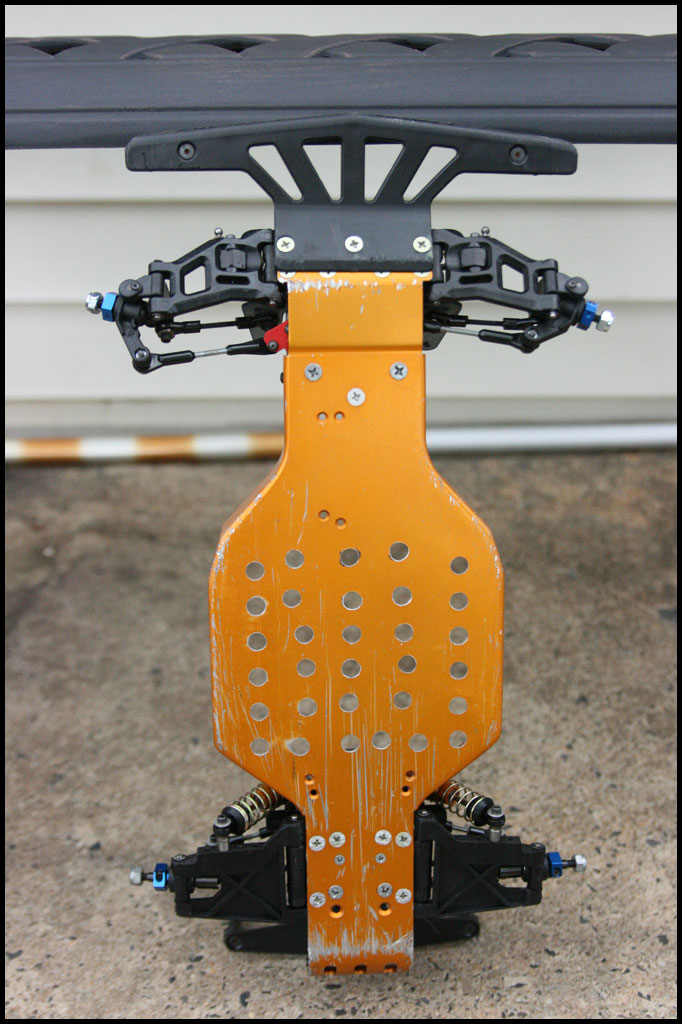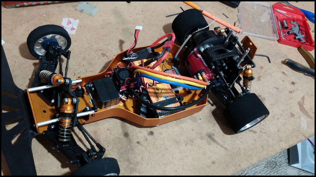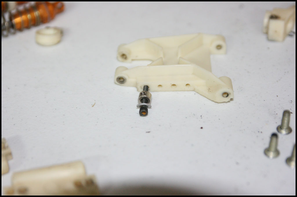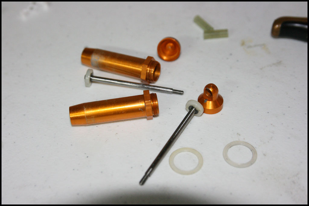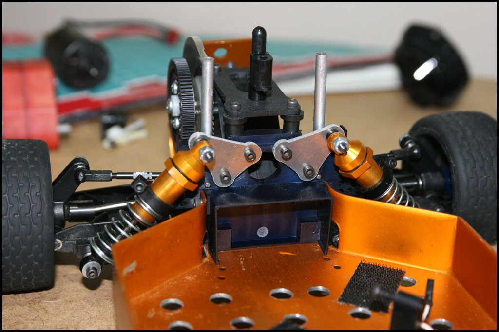 Started with this one first since I was able to find wheels and tires for it. She was really dirty but we used to race these things every week. Turning out awesome. Originally it had Kyosho front shocks on the rear - but I was able to find a cheap set of RC10 fronts on Ebay so when they come in I'll have a matching set and the Kyosho shocks can go back where they belong. All the shocks were rebuilt and I dyed everything black. It looked weird with some white and some black parts so I evened it out. This one even had a super trick A&L belt driven transmission - I definitely don't remember doing that. Should be done soon.
